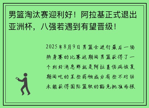 阅读2025年8月9日男篮会进行最后一场热身赛的比赛,这期间男篮获得了一个利好消息,那就是阿拉基伤病恢复期间吃的某些药物成分有些不对劲,未能获得国际篮联的豁免批准。而根据之前的动态,黎巴嫩曝光阿拉基接近复出,同时阿拉基自己曝光,他已经向FIBA提交申请,对服用药物进行检测。无奈最终没有通过,这对于男篮是...